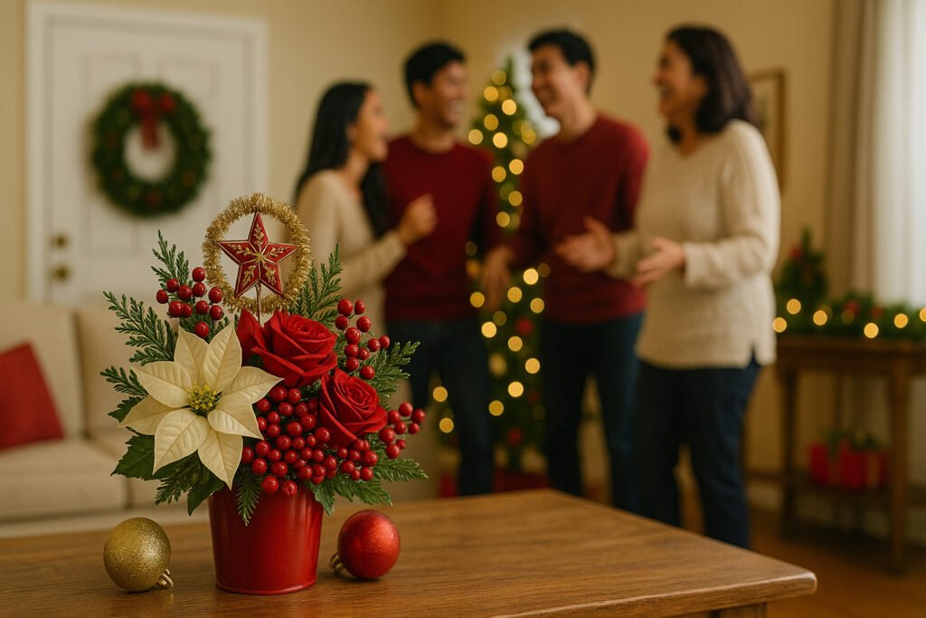 Flowers make any space feel special. Our Christmas flower bouquets often feature roses, lilies, carnations, and greenery in festive colors like red, white, and gold. They’re great for: