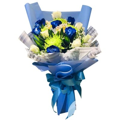 12pcs of Blue Rose and White Roses in Bouquet