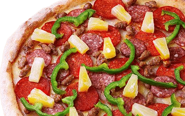pepperoni, garlic, italian sausage, green pepper, chorizo, pineapple, mozzarella cheese