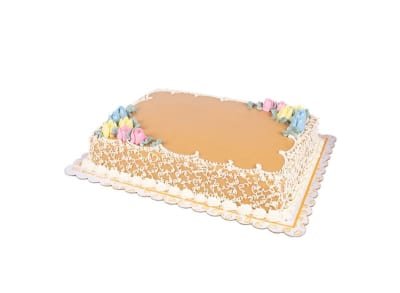 Deliciously soft chiffon cake with melt-in-your-mouth caramel icing and filling, topped with buttercream flowers. Personalize this cake with a sweet dedication for your friends and loved ones (input in the request box below; maximum of 8 words).