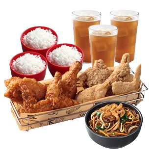 A Korean group meal for the food-loving squad! Delight in a flavorful meal of 6 pcs. Bonchon Korean Fried Chicken, 1 regular Chapchae, 3 cups of White Rice, and 3 cups of your drink of choice