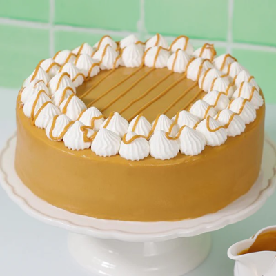 Light & pillowy-soft sponge cake paired with silky smooth caramel icing, topped off with white cream kisses and a delicious caramel drizzle.