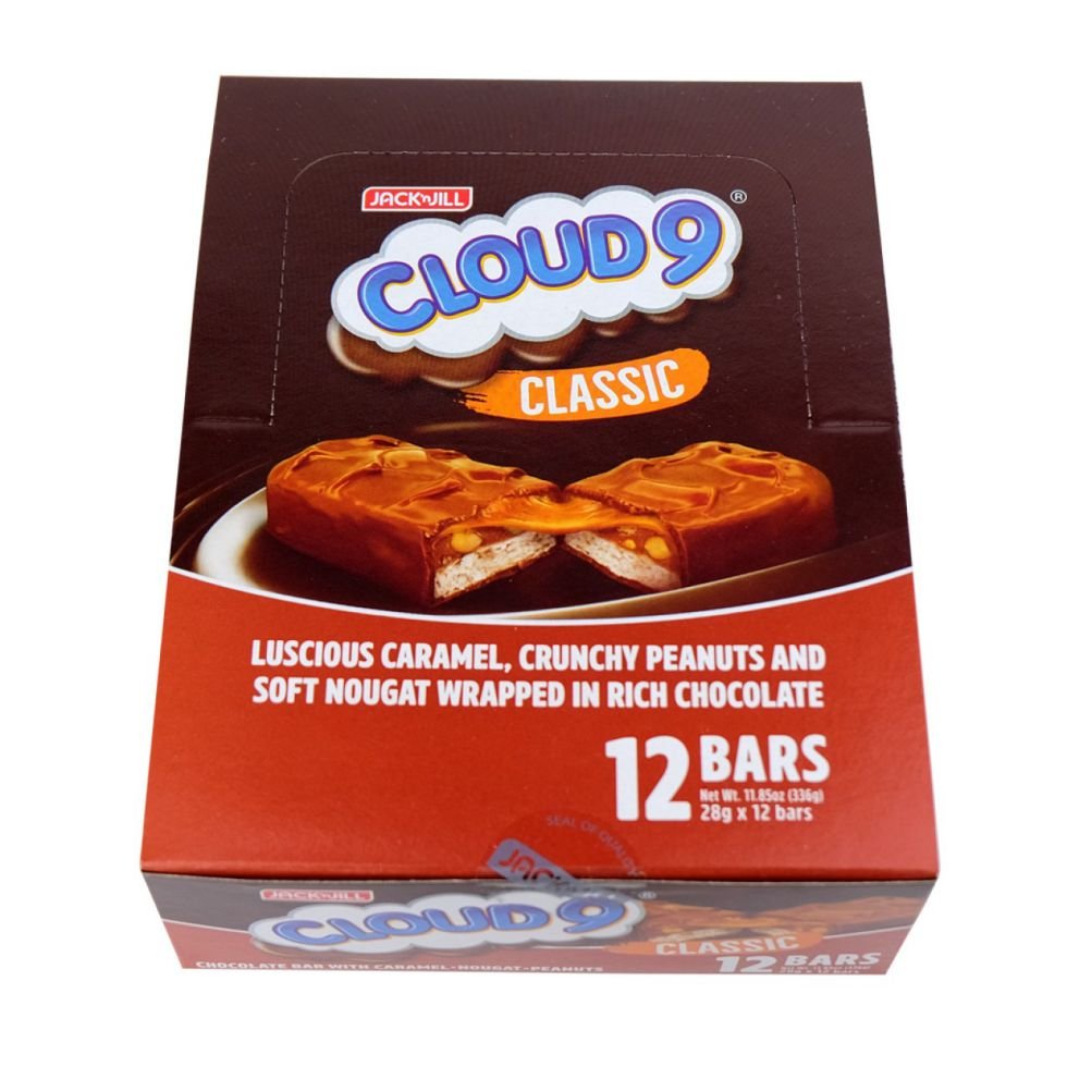 A small bar of caramel, chewy nougat, and peanuts wrapped in thin chocolate, the Cloud 9 Classic bar still has that chocolate magic–peanuts offset the overly sweet chocolate while the nougat adds texture to the usual chocolate bar.