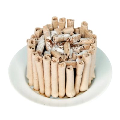 Vanilla chiffon filled with light chocolate mousse playfully covered with chocolate meringue sticks. A favorite among kids and kids at heart!