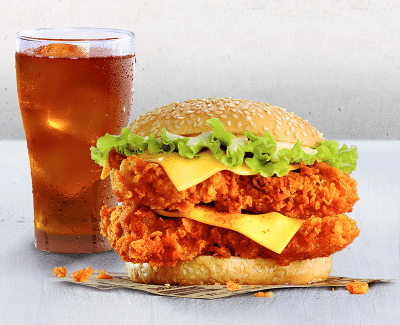 Our mouth-watering Extreme Double Patty Zinger paired with your choice of drink.