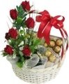 this basket contain 2 box of ferrero and each box contain 24 and 16 ferrero. and comes with 1 dozen red rose bouquet.