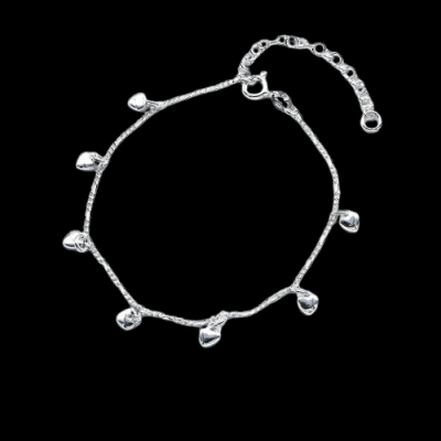 Figaro Chain Bracelet with 7 Small Dangling HeartFigaro Chain Bracelet with 7 Small Dangling Heart