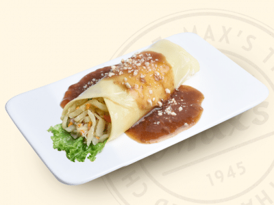 Tender, savory julienne slice of fresh coconut heart with pork, shrimp & crabmeat wrapped in egg crepe & topped with a nutty, garlicky brown sauce.