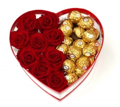 1 Dozen Red Roses with Ferero 16 pcs truly will make your heart full of love