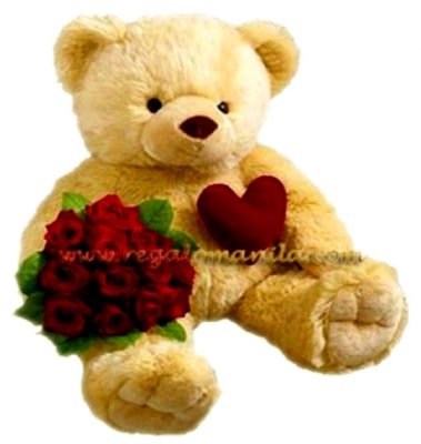This stunning 12 Pcs fresh rose bouquet is accompanied by our snuggly bear carrying a heart, for a remarkable gift that will have them hearing your message of love loud and clear!This sized bear measures Approximately 18-20 Inches !!
