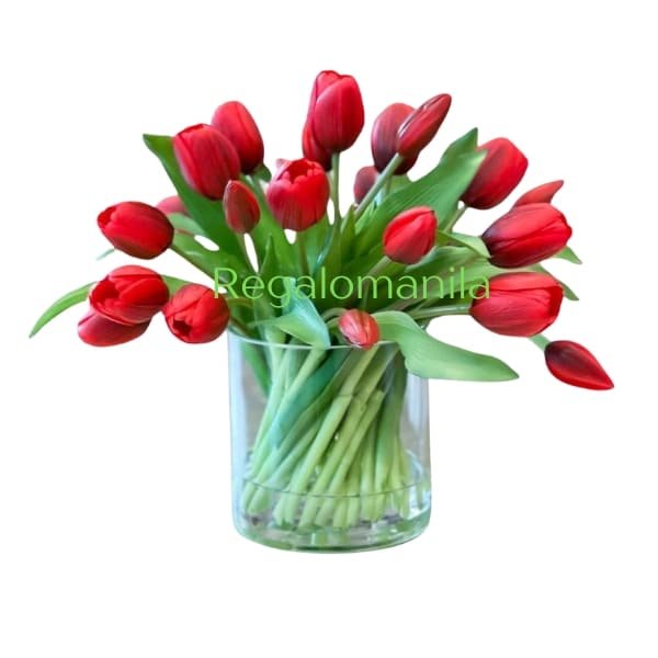 15 Red tulips make a great presentation. As an added a bonus we have included a FREE classic glass vase with your bouquet. Your flowers arrive wrapped and ready for the recipient to arrange in their own special way. Vase may vary.