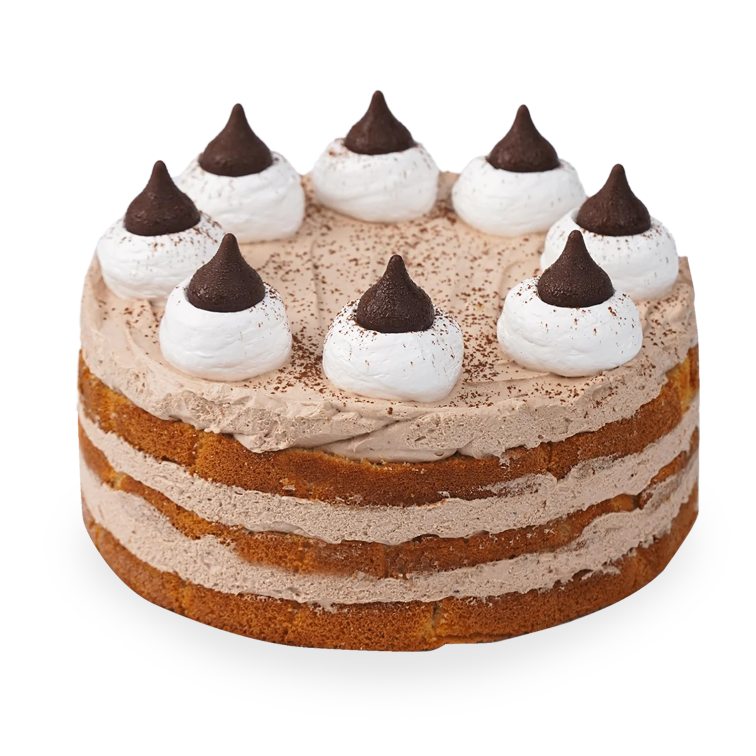 This yummy cake is made with chocolate sponge cake, cream cheese whipped cream mixture, and topped with whipped cream, cocoa powder, and Hershey’s Kisses!