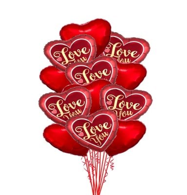 6 plain heart red balloon + 6 heart LOVE YOU balloon total of 12 mylar balloons.