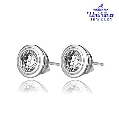 Push pull earring stud 6m round cut cubic zirconia stone