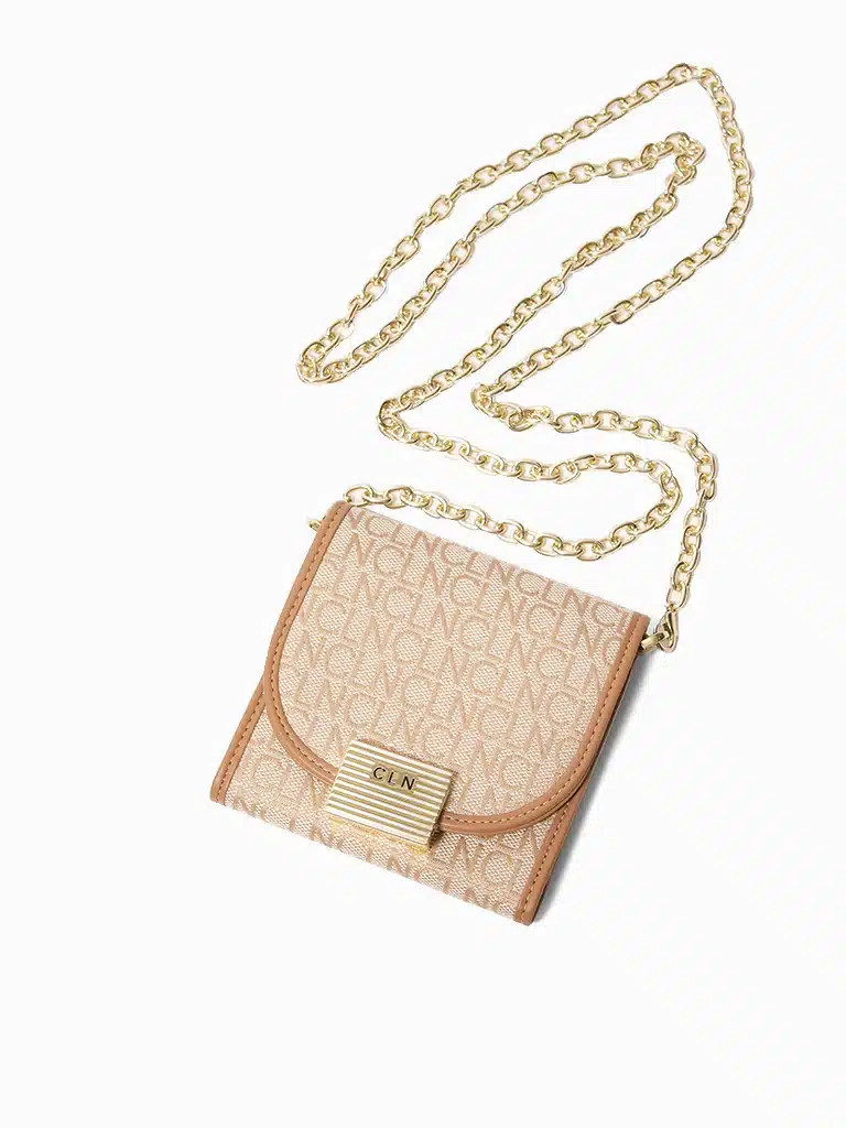 • Sling Tri-fold mini wallet with snap button closure, 6 card slots, 1 coin slot with zip-closure, 2 slip pockets, bill note compartment