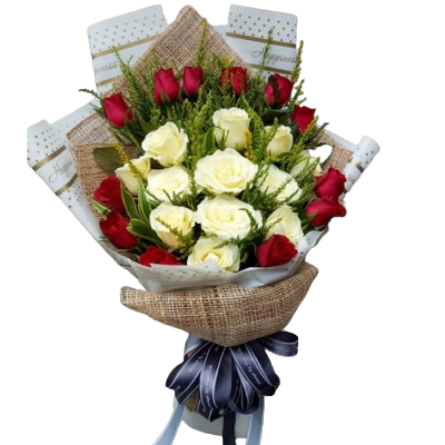 A combination of 12 stems of red roses and 12 stems of white roses symbolize for everlasting love.