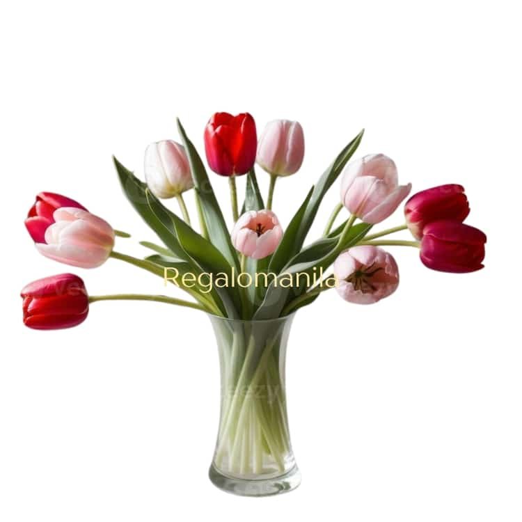 Mixed Pink and Red Tulip in Vase