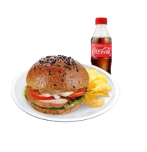 Our roasted chicken is sliced to chunky pieces, mixed with special mayo and tomato dressing, then covered with our famous sesame buns. Combo size served with crispy-thin potato chips, and a drink.