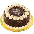 Three layered chocolate sponge cake filled in between with chocolate frosting, marshmallow and chocolate chips. The whole cake is iced with chocolate frosting and finished with a ripple like design on the side. The surface and bottom side is bordered with vanilla butter icing that is drizzled with chocolate frosting.Size Round