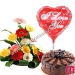 This truly remarkable gifts comes with 10 pcs assorted gerberas, 1 mylar heart shape balloons and 1 regular size cake from goldilocks..