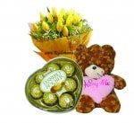 Make everyone feel the heat of your heart with this combo gifts. This combo gifts consist 1 dozen yellow tulips , 1 small stuff toy