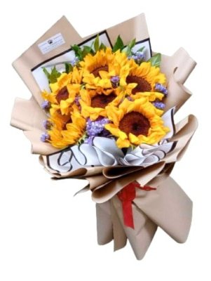 Look no further than this 6pcs sunflower in a bouquet! This vibrant bouquet of sunflowers is sure to brighten up any room and bring a smile to the lucky recipient.